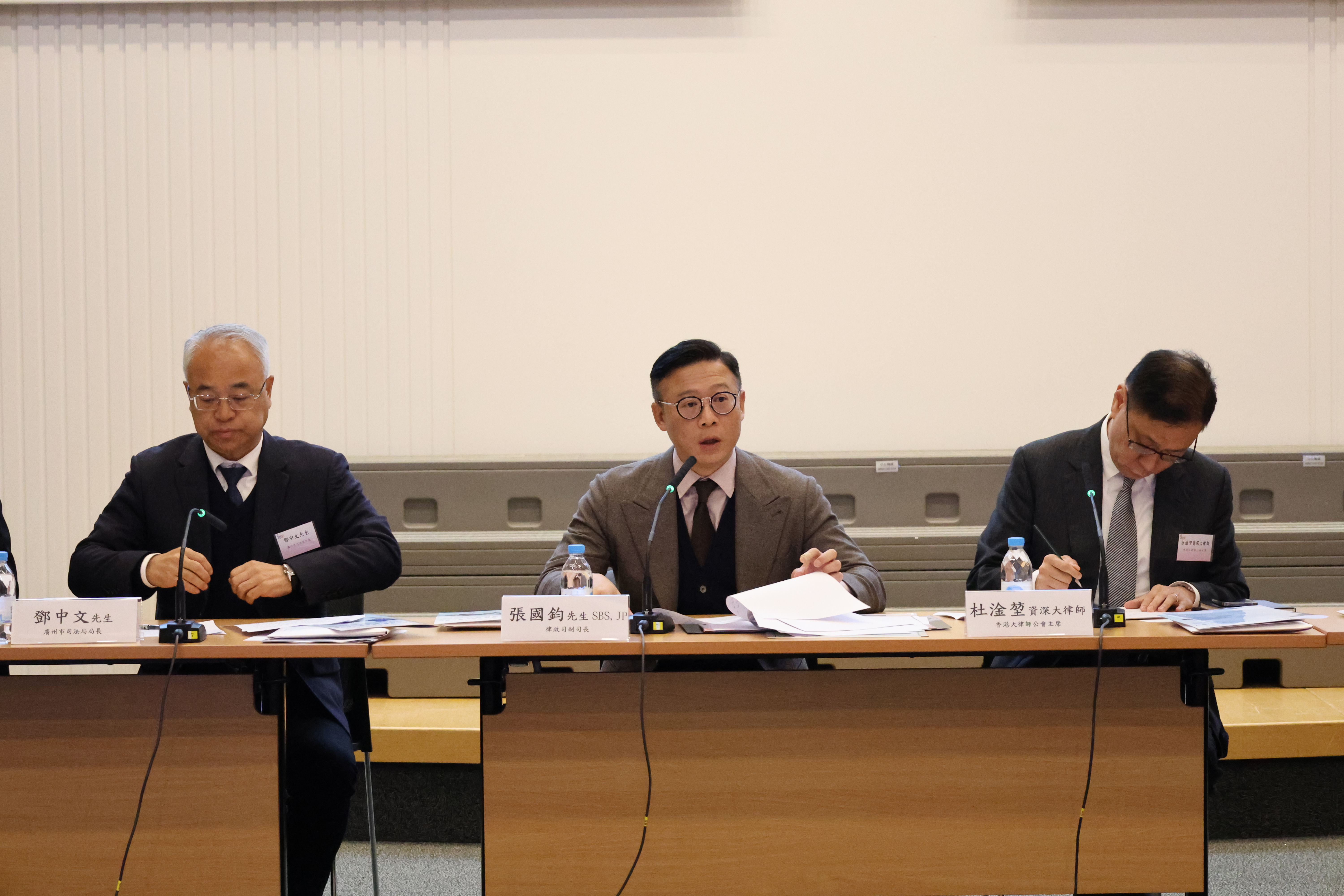 香港律政司張國鈞副司長表示,座談會非常有意義 。律政司十分重視推動大灣區的法治建設,正著力推動各種政策工作,為業界創造有利的條件。廣州市司法局鄧中文局長則表示,座談會富有成效,將會就大灣區律師提到的意見加以研究,為兩地法律服務合作提供堅實支持。